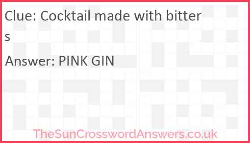 Cocktail made with bitters is a crossword clue for which we have 1 possible answer and we have spotted 1 times in our database. This crossword clue was last seen on 19 November 2019 in The Sun Coffee Time Crossword puzzle!
