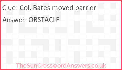 Col. Bates moved barrier is a crossword clue for which we have 1 possible answer and we have spotted 3 times in our database. This crossword clue was last seen on 15 January 2025 in The Sun Cryptic Crossword puzzle!