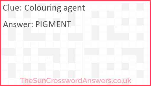 Colouring agent is a crossword clue for which we have 1 possible answer and we have spotted 2 times in our database. This crossword clue was last seen on 30 December 2022 in The Sun Coffee Time Crossword puzzle!
