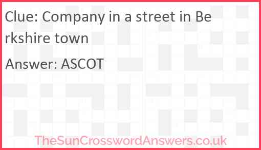 Company in a street in Berkshire town is a crossword clue for which we have 1 possible answer and we have spotted 2 times in our database. This crossword clue was last seen on 01 April 2023 in The Sun Cryptic Crossword puzzle!