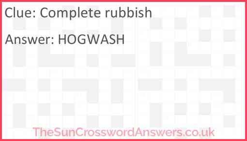 Complete rubbish is a crossword clue for which we have 1 possible answer and we have spotted 5 times in our database. This crossword clue was last seen on 16 April 2024 in The Sun Coffee Time Crossword puzzle!