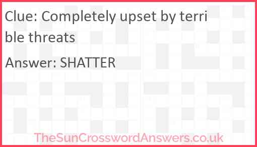 Completely upset by terrible threats is a crossword clue for which we have 1 possible answer and we have spotted 2 times in our database. This crossword clue was last seen on 09 July 2024 in The Sun Cryptic Crossword puzzle!
