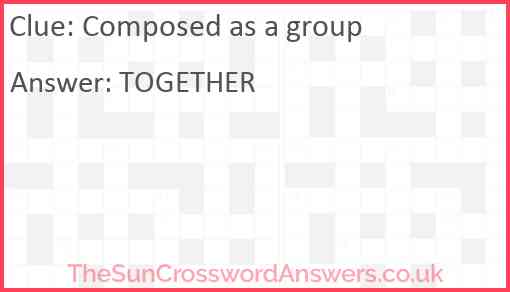 Composed as a group is a crossword clue for which we have 1 possible answer and we have spotted 1 times in our database. This crossword clue was last seen on 14 February 2020 in The Sun Cryptic Crossword puzzle!
