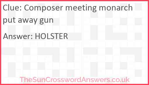 Composer meeting monarch put away gun is a crossword clue for which we have 1 possible answer and we have spotted 1 times in our database. This crossword clue was last seen on 18 December 2020 in The Sun Cryptic Crossword puzzle!
