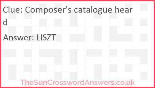 Composer's catalogue heard is a crossword clue for which we have 1 possible answer and we have spotted 2 times in our database. This crossword clue was last seen on 05 December 2022 in The Sun Cryptic Crossword puzzle!