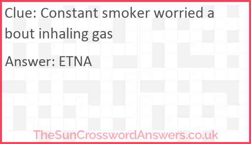 Constant smoker worried about inhaling gas is a crossword clue for which we have 1 possible answer and we have spotted 1 times in our database. This crossword clue was last seen on 14 January 2025 in The Sun Cryptic Crossword puzzle!