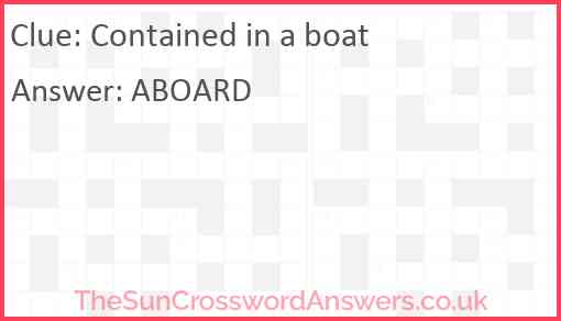 Contained in a boat is a crossword clue for which we have 1 possible answer and we have spotted 1 times in our database. This crossword clue was last seen on 03 November 2019 in The Sun Coffee Time Crossword puzzle!