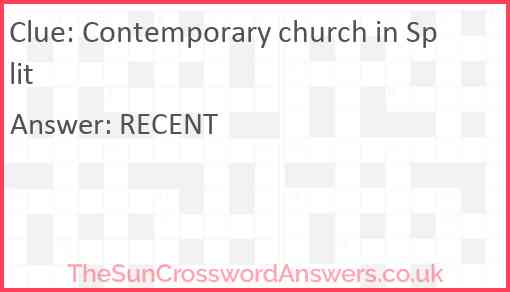 Contemporary church in split is a crossword clue for which we have 1 possible answer and we have spotted 3 times in our database. This crossword clue was last seen on 07 September 2024 in The Sun Cryptic Crossword puzzle!