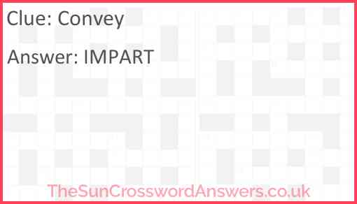 Convey is a crossword clue for which we have 5 possible answer and we have spotted 13 times in our database. This crossword clue was last seen on 23 May 2025 in The Sun Coffee Time Crossword puzzle!