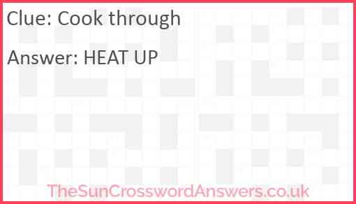 Cook through is a crossword clue for which we have 2 possible answer and we have spotted 3 times in our database. This crossword clue was last seen on 16 November 2023 in The Sun Coffee Time Crossword puzzle!