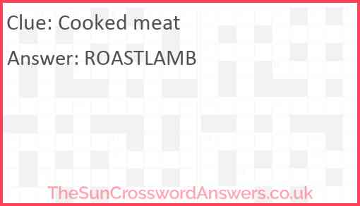 Cooked meat is a crossword clue for which we have 1 possible answer and we have spotted 2 times in our database. This crossword clue was last seen on 18 July 2024 in The Sun Coffee Time Crossword puzzle!