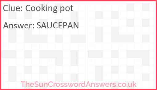 Cooking pot is a crossword clue for which we have 1 possible answer and we have spotted 11 times in our database. This crossword clue was last seen on 02 May 2025 in The Sun Coffee Time Crossword puzzle!