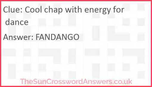 Cool chap with energy for dance is a crossword clue for which we have 1 possible answer and we have spotted 2 times in our database. This crossword clue was last seen on 11 June 2023 in The Sun Cryptic Crossword puzzle!