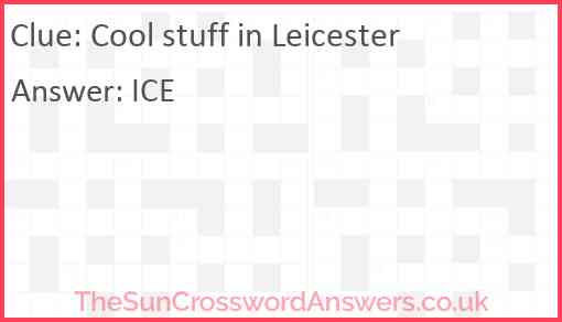 Cool stuff in Leicester is a crossword clue for which we have 1 possible answer and we have spotted 2 times in our database. This crossword clue was last seen on 14 March 2025 in The Sun Cryptic Crossword puzzle!