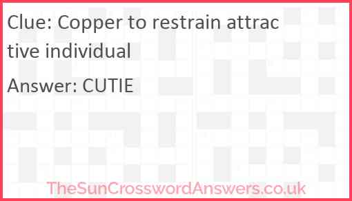 Copper to restrain attractive individual is a crossword clue for which we have 1 possible answer and we have spotted 2 times in our database. This crossword clue was last seen on 20 December 2024 in The Sun Cryptic Crossword puzzle!