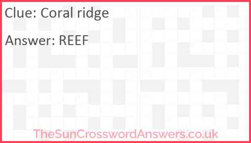 Coral ridge is a crossword clue for which we have 1 possible answer and we have spotted 7 times in our database. This crossword clue was last seen on 05 November 2023 in The Sun Coffee Time Crossword puzzle!