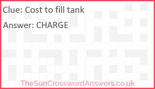 Cost to fill tank is a crossword clue for which we have 1 possible answer and we have spotted 1 times in our database. This crossword clue was last seen on 31 October 2022 in The Sun Cryptic Crossword puzzle!
