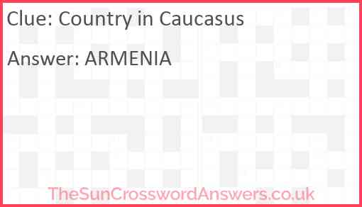 Country in Caucasus is a crossword clue for which we have 1 possible answer and we have spotted 2 times in our database. This crossword clue was last seen on 13 September 2022 in The Sun Coffee Time Crossword puzzle!