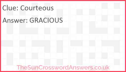 Courteous is a crossword clue for which we have 1 possible answer and we have spotted 1 times in our database. This crossword clue was last seen on 26 April 2021 in The Sun Coffee Time Crossword puzzle!