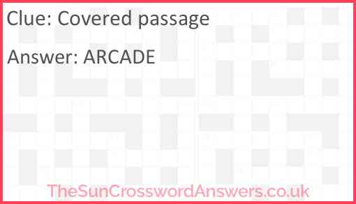 Covered passage is a crossword clue for which we have 1 possible answer and we have spotted 3 times in our database. This crossword clue was last seen on 17 March 2022 in The Sun Coffee Time Crossword puzzle!