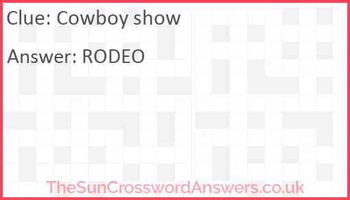 Cowboy show is a crossword clue for which we have 1 possible answer and we have spotted 5 times in our database. This crossword clue was last seen on 27 September 2022 in The Sun Coffee Time Crossword puzzle!