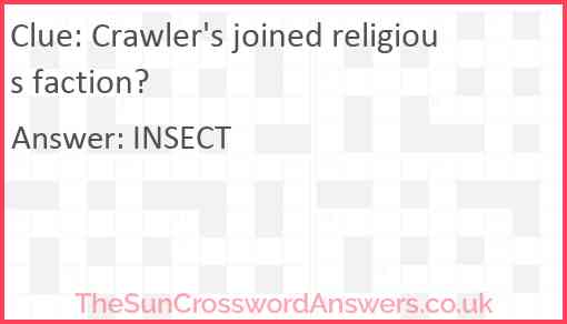 Crawler's joined religious faction! is a crossword clue for which we have 1 possible answer and we have spotted 2 times in our database. This crossword clue was last seen on 06 April 2024 in The Sun Cryptic Crossword puzzle!