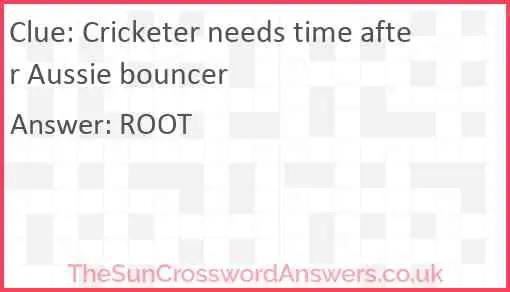 Cricketer needs time after Aussie bouncer is a crossword clue for which we have 1 possible answer and we have spotted 1 times in our database. This crossword clue was last seen on 18 March 2023 in The Sun Cryptic Crossword puzzle!