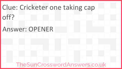 Cricketer one taking cap off? is a crossword clue for which we have 1 possible answer and we have spotted 3 times in our database. This crossword clue was last seen on 16 May 2025 in The Sun Cryptic Crossword puzzle!