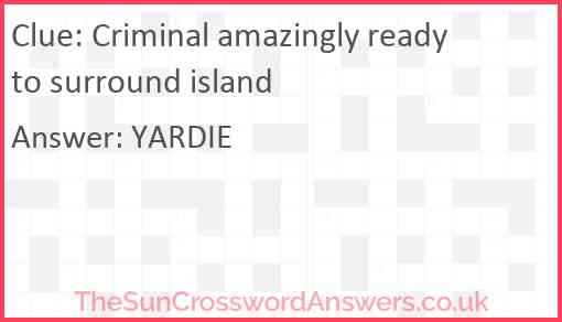 Criminal amazingly ready to surround island is a crossword clue for which we have 1 possible answer and we have spotted 1 times in our database. This crossword clue was last seen on 26 October 2020 in The Sun Cryptic Crossword puzzle!