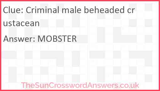 Criminal male beheaded crustacean is a crossword clue for which we have 1 possible answer and we have spotted 1 times in our database. This crossword clue was last seen on 25 March 2021 in The Sun Cryptic Crossword puzzle!
