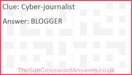 Cyber-journalist is a crossword clue for which we have 1 possible answer and we have spotted 3 times in our database. This crossword clue was last seen on 10 October 2022 in The Sun Coffee Time Crossword puzzle!