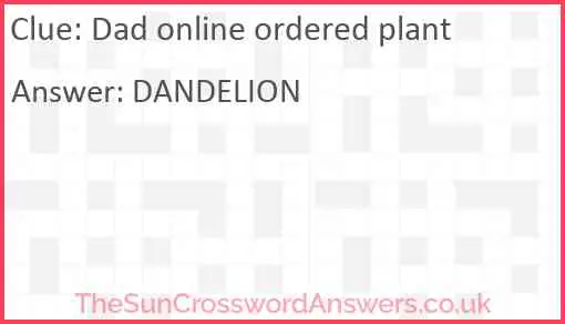 Dad online ordered plant is a crossword clue for which we have 1 possible answer and we have spotted 2 times in our database. This crossword clue was last seen on 09 December 2020 in The Sun Cryptic Crossword puzzle!