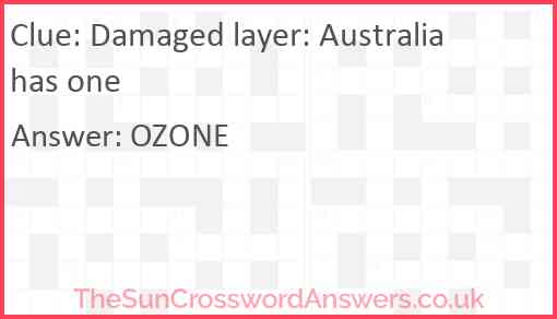 Damaged layer? Australia has one is a crossword clue for which we have 1 possible answer and we have spotted 5 times in our database. This crossword clue was last seen on 31 January 2025 in The Sun Cryptic Crossword puzzle!