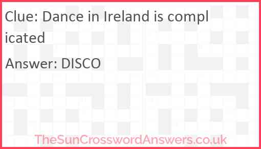 Dance in Ireland is complicated is a crossword clue for which we have 1 possible answer and we have spotted 1 times in our database. This crossword clue was last seen on 03 May 2021 in The Sun Cryptic Crossword puzzle!