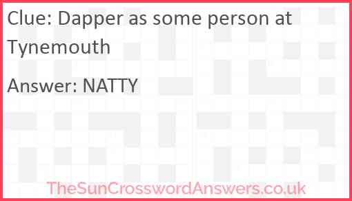 Dapper as some person at Tynemouth is a crossword clue for which we have 1 possible answer and we have spotted 2 times in our database. This crossword clue was last seen on 15 December 2023 in The Sun Cryptic Crossword puzzle!