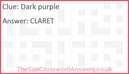 Dark purple is a crossword clue for which we have 1 possible answer and we have spotted 9 times in our database. This crossword clue was last seen on 03 November 2023 in The Sun Coffee Time Crossword puzzle!
