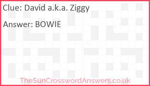David a.k.a. Ziggy is a crossword clue for which we have 1 possible answer and we have spotted 1 times in our database. This crossword clue was last seen on 10 September 2023 in The Sun Coffee Time Crossword puzzle!