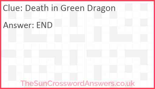 Death in Green Dragon is a crossword clue for which we have 1 possible answer and we have spotted 2 times in our database. This crossword clue was last seen on 13 December 2024 in The Sun Cryptic Crossword puzzle!