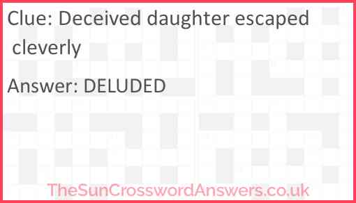 Deceived daughter escaped cleverly is a crossword clue for which we have 1 possible answer and we have spotted 4 times in our database. This crossword clue was last seen on 04 April 2024 in The Sun Cryptic Crossword puzzle!