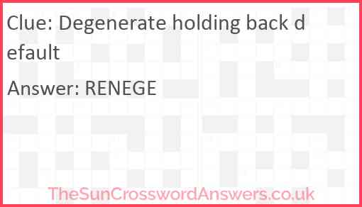 Degenerate holding back default is a crossword clue for which we have 1 possible answer and we have spotted 2 times in our database. This crossword clue was last seen on 29 July 2025 in The Sun Cryptic Crossword puzzle!