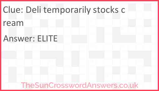 Deli temporarily stocks cream is a crossword clue for which we have 2 possible answer and we have spotted 5 times in our database. This crossword clue was last seen on 13 August 2024 in The Sun Cryptic Crossword puzzle!