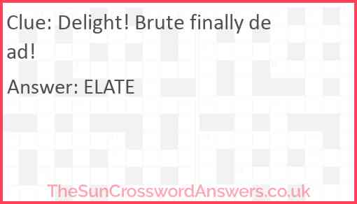Delight! Brute finally dead! is a crossword clue for which we have 1 possible answer and we have spotted 3 times in our database. This crossword clue was last seen on 05 November 2024 in The Sun Cryptic Crossword puzzle!