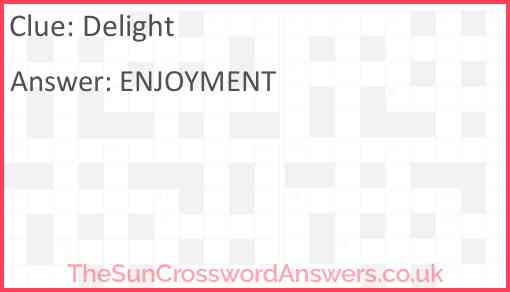 Delight is a crossword clue for which we have 3 possible answer and we have spotted 10 times in our database. This crossword clue was last seen on 01 February 2024 in The Sun Coffee Time Crossword puzzle!
