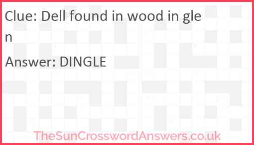 Dell found in wood in glen is a crossword clue for which we have 1 possible answer and we have spotted 1 times in our database. This crossword clue was last seen on 07 December 2024 in The Sun Cryptic Crossword puzzle!
