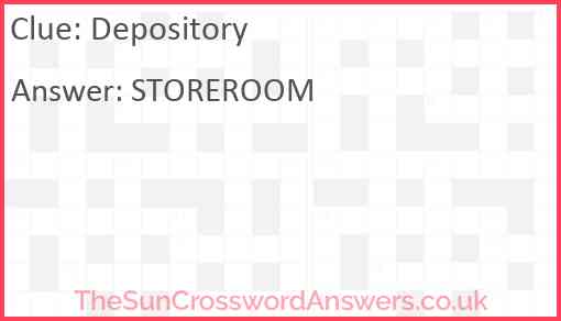 Depository is a crossword clue for which we have 1 possible answer and we have spotted 2 times in our database. This crossword clue was last seen on 13 May 2023 in The Sun Coffee Time Crossword puzzle!