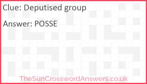 Deputised group is a crossword clue for which we have 1 possible answer and we have spotted 3 times in our database. This crossword clue was last seen on 29 December 2024 in The Sun Coffee Time Crossword puzzle!