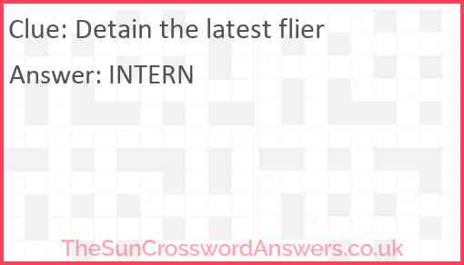 Detain the latest flier is a crossword clue for which we have 1 possible answer and we have spotted 1 times in our database. This crossword clue was last seen on 06 May 2021 in The Sun Cryptic Crossword puzzle!