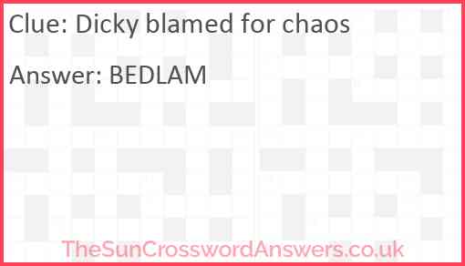 Dicky blamed for chaos is a crossword clue for which we have 1 possible answer and we have spotted 2 times in our database. This crossword clue was last seen on 05 April 2023 in The Sun Cryptic Crossword puzzle!