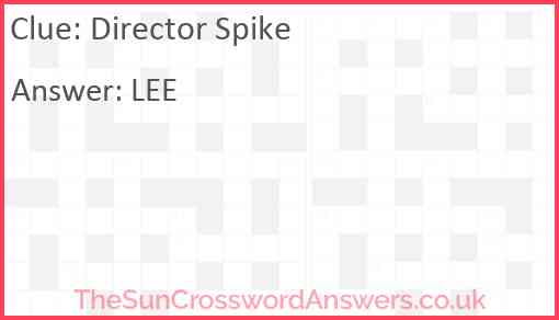Director Spike is a crossword clue for which we have 1 possible answer and we have spotted 3 times in our database. This crossword clue was last seen on 15 November 2024 in The Sun Coffee Time Crossword puzzle!