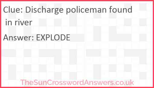 Discharge policeman found in river is a crossword clue for which we have 1 possible answer and we have spotted 4 times in our database. This crossword clue was last seen on 31 October 2024 in The Sun Cryptic Crossword puzzle!